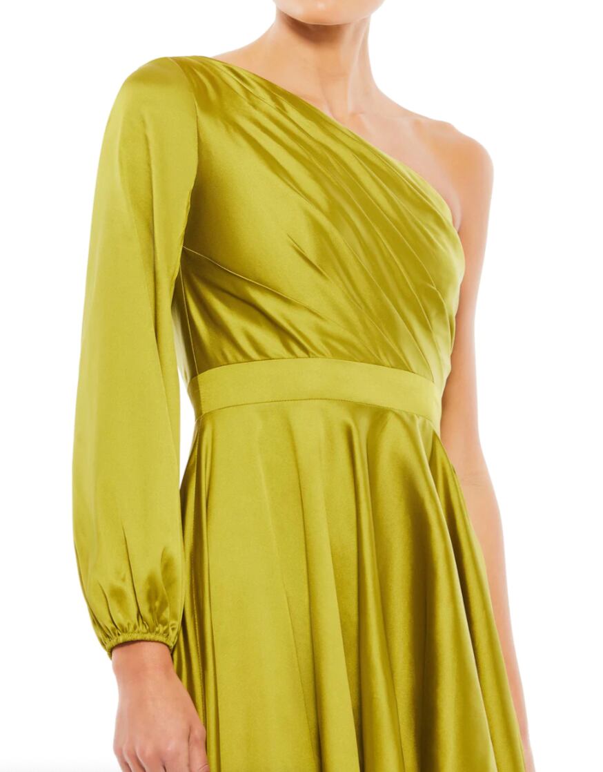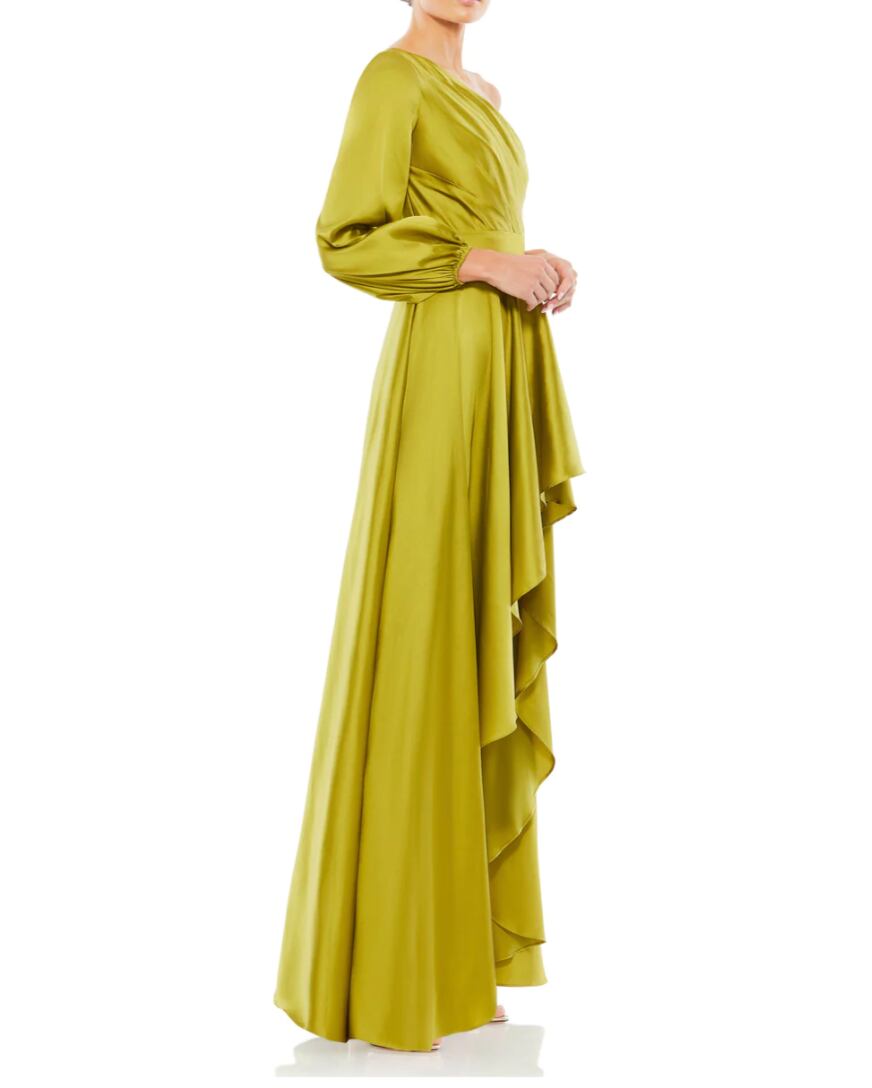 海外お取り寄せ Mac duggal サテンラッフルワンショルロングドレス