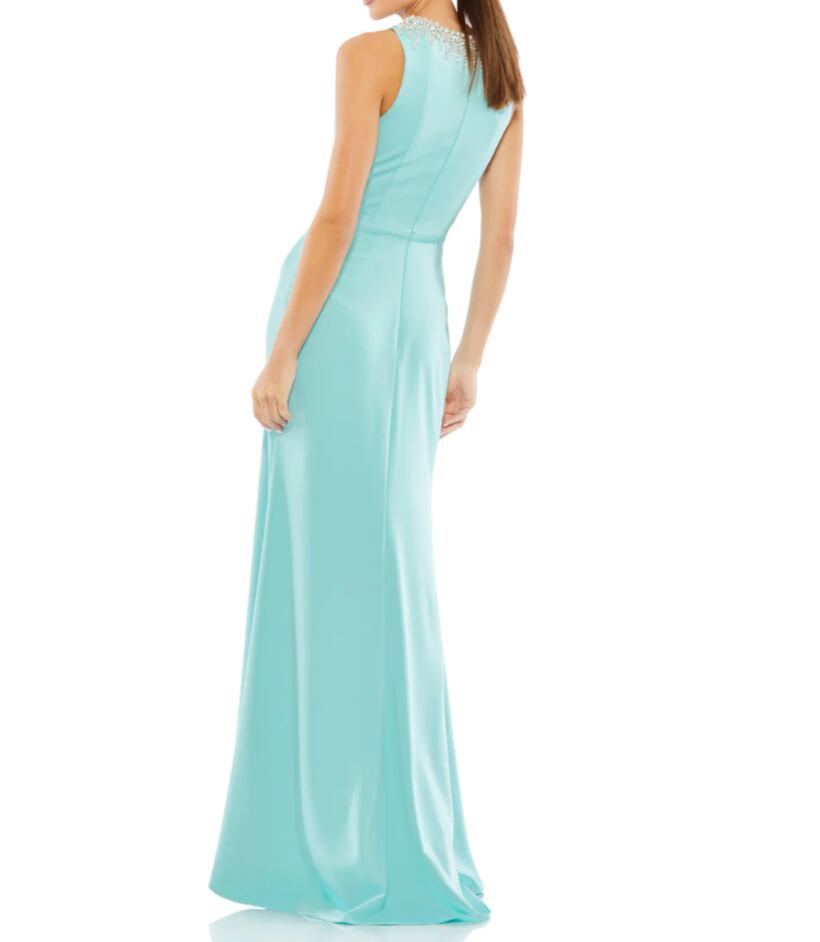 海外お取り寄せ Mac duggal 装飾ネックラインスリットロングドレス