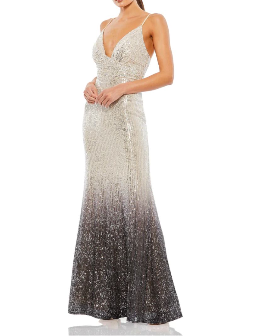 海外お取り寄せ Mac duggal オンブルカラースリーブレスシークインロングドレス