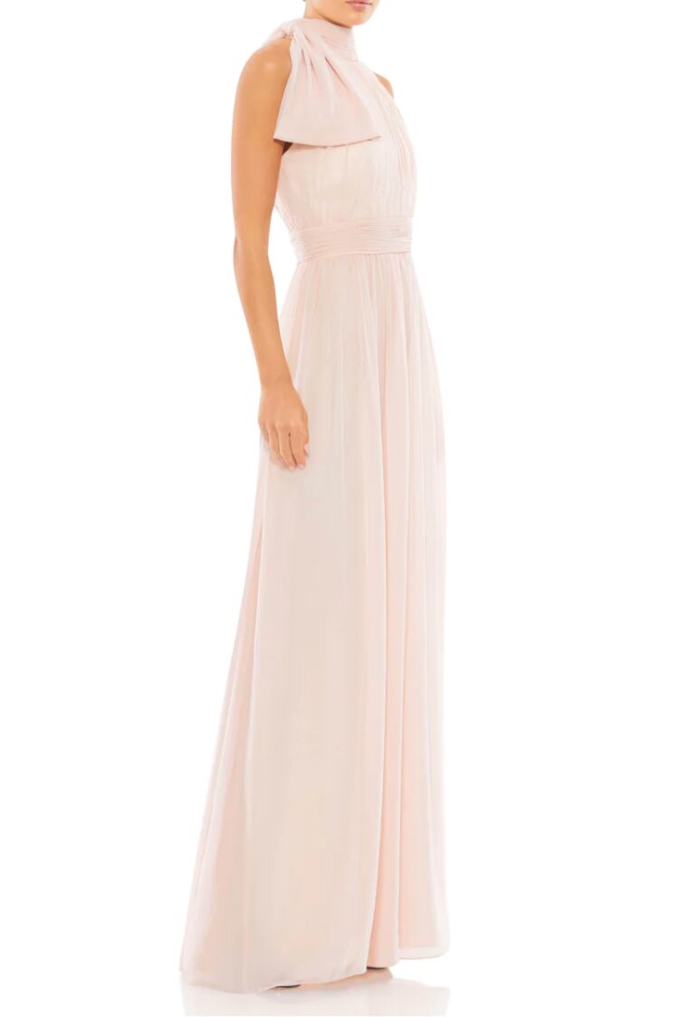 海外お取り寄せ Mac duggal ホルターネックリボンロングドレス