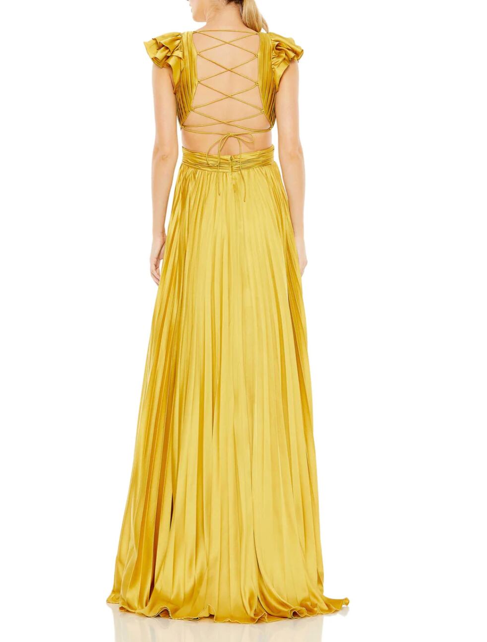 海外お取り寄せ Mac duggal プリーツラッフルトリムVネックロングドレス