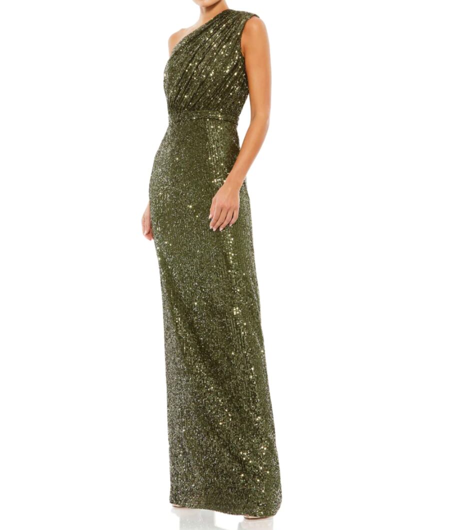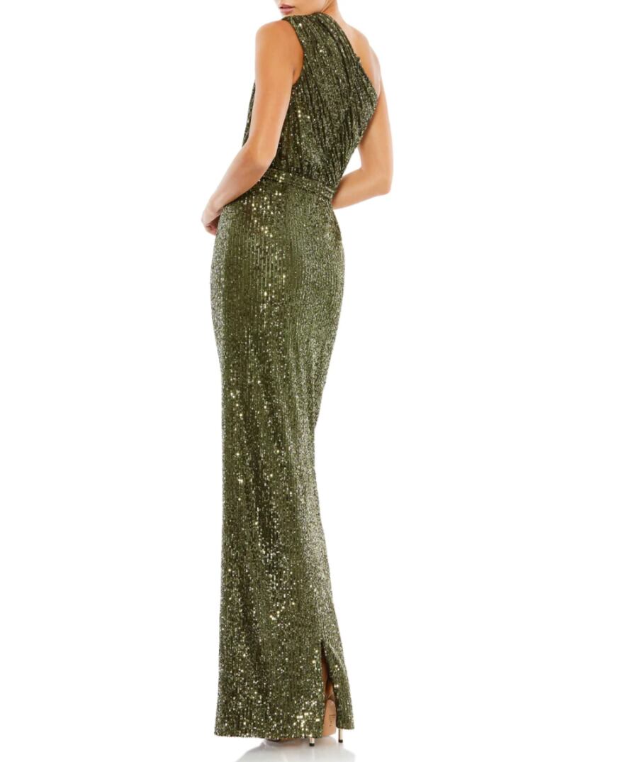 海外お取り寄せ Mac duggal ワンショルダーシークインレースロングドレス