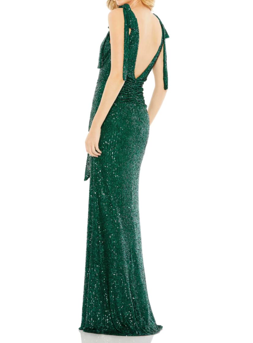 海外お取り寄せ Mac duggal ワンショルダーシークインレースロングドレス