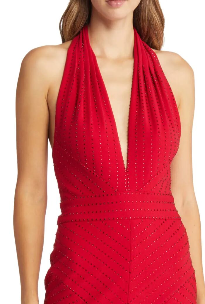 深めVネックラインのホルタータイプ。